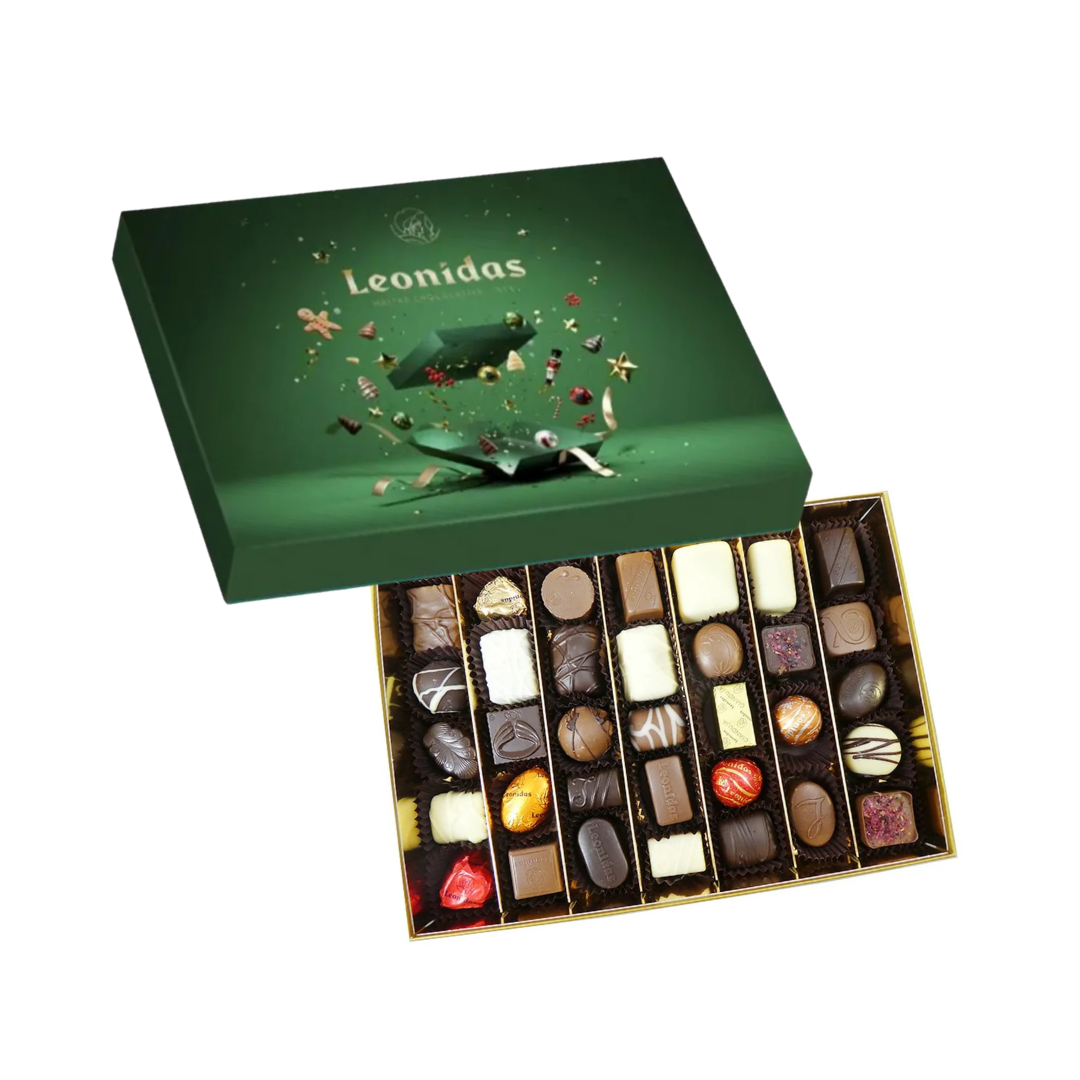 Christmas Green Premium Festive Square Box L - leonidasbrighton.co.uk - Leonidas Brighton