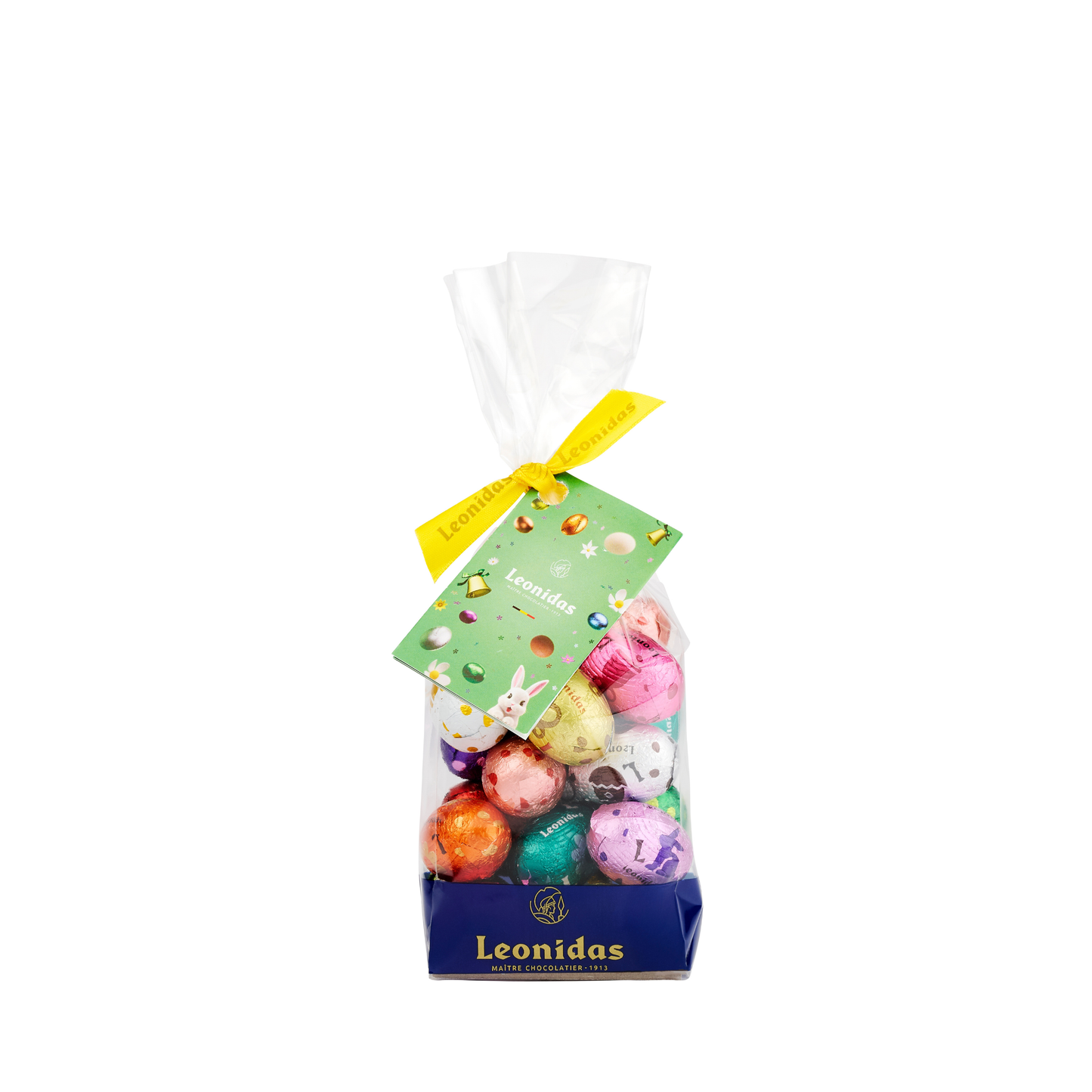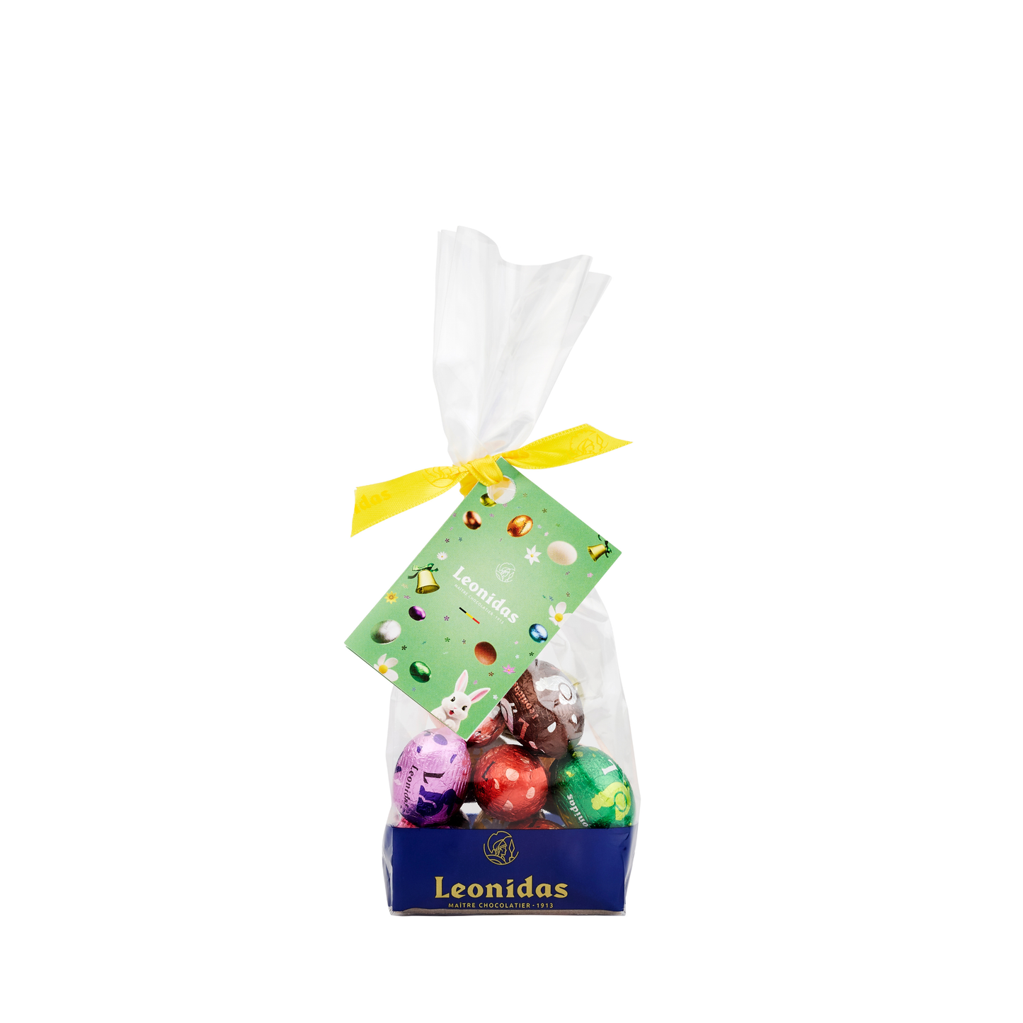 Choose chocolate-type of Leonidas signature mini eggs in a cello bag with different size options.