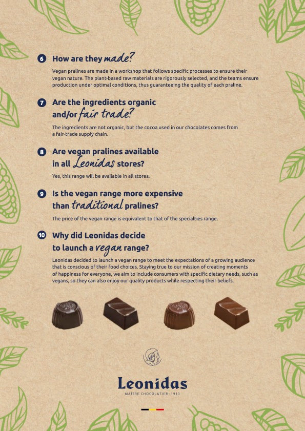 To ensure your Leonidas chocolate shop order is dispatched on the same day, please place your order by 1 PM from Monday to Friday, and 10 AM on Saturdays.