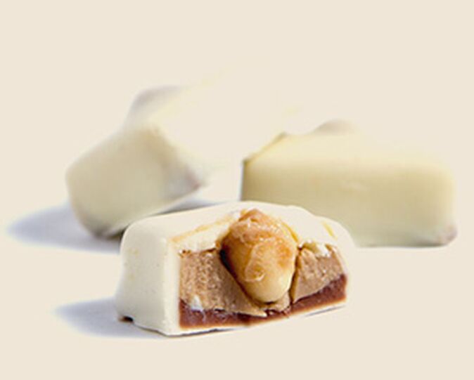 Yanni created a world first with this new recipe. He had the genius idea of replacing the melted sugar with white chocolate. At that time, nowhere else in the world were pralines being made with white chocolate. The walnut was then replaced by a hazelnut because you can toast it. This made it easier to store them for longer. Finally, he replaced the nougatine with the well-known buttercream. This new recipe transformed the Manon into the praline that we love so much.